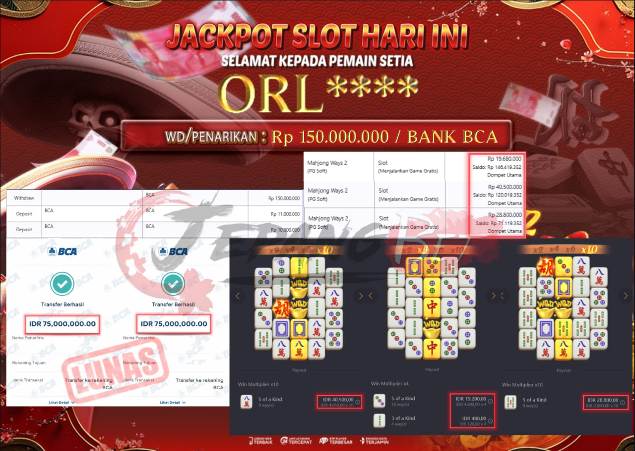 Jackpot Slot Mahjong Ways 2 Berhasil Dibayarkan Lunas Sebesar Rp 150.000.000.,- LUNAS