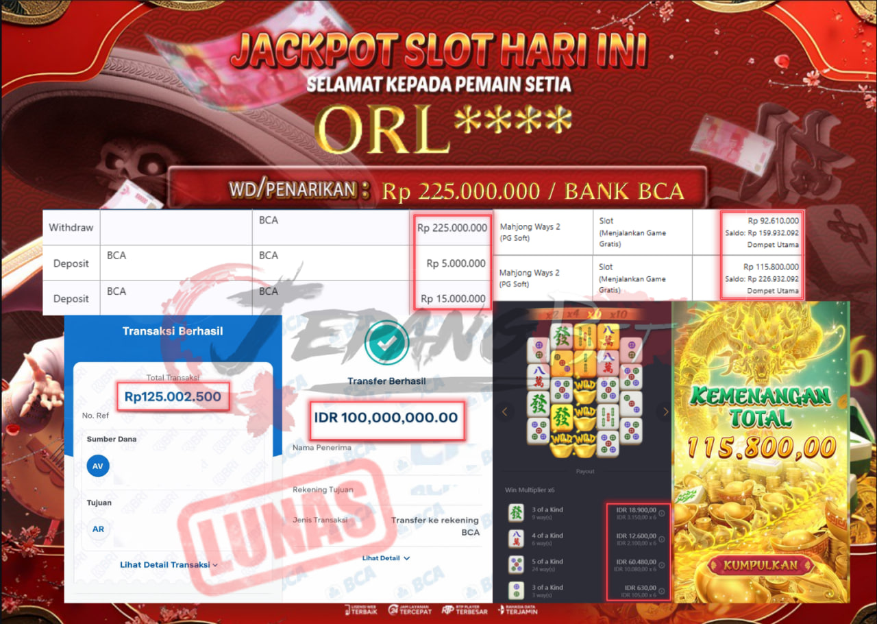 Jackpot Slot Mahjong Ways 2 Berhasil Dibayarkan Lunas Sebesar Rp 225.000.000.,- LUNAS