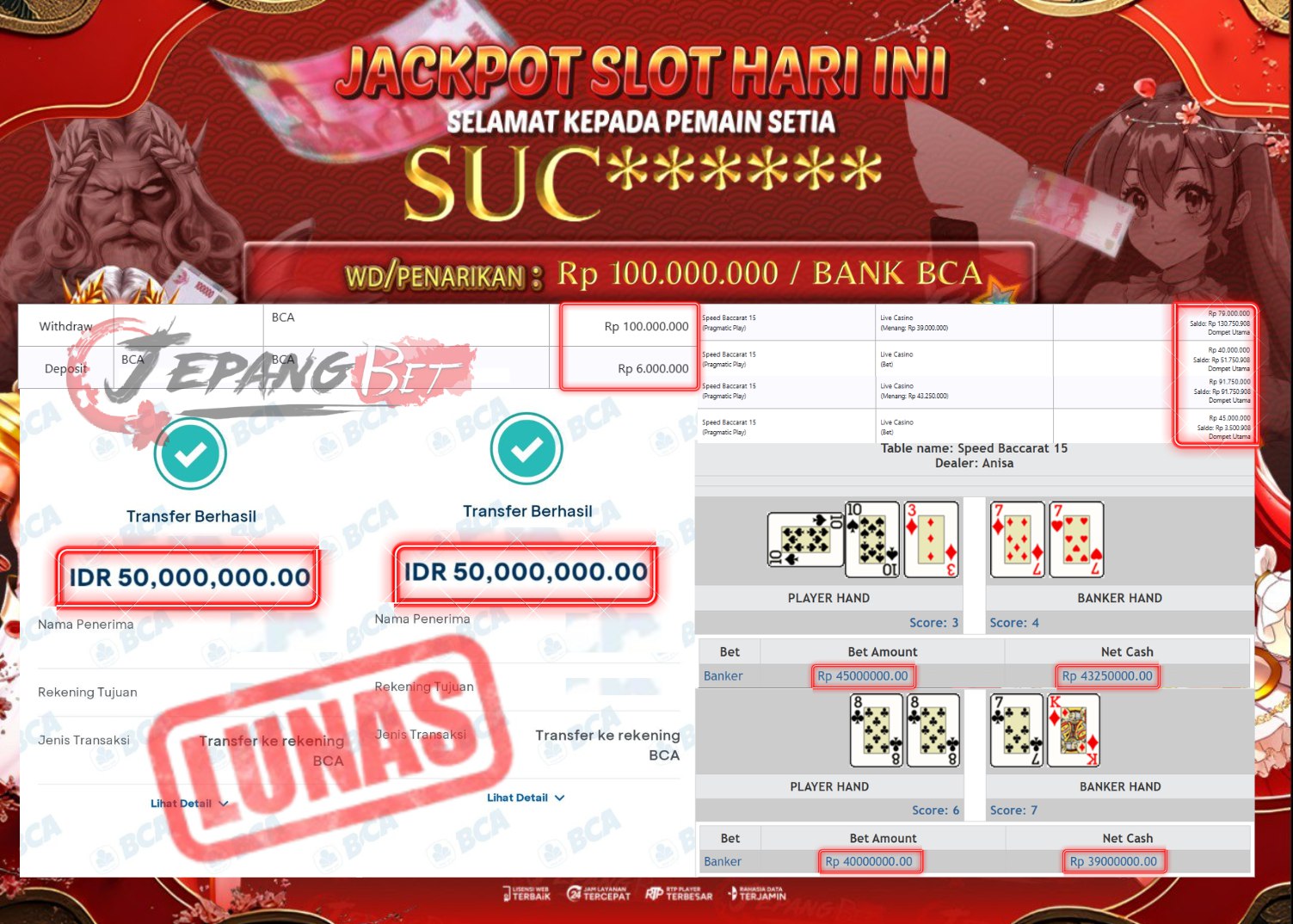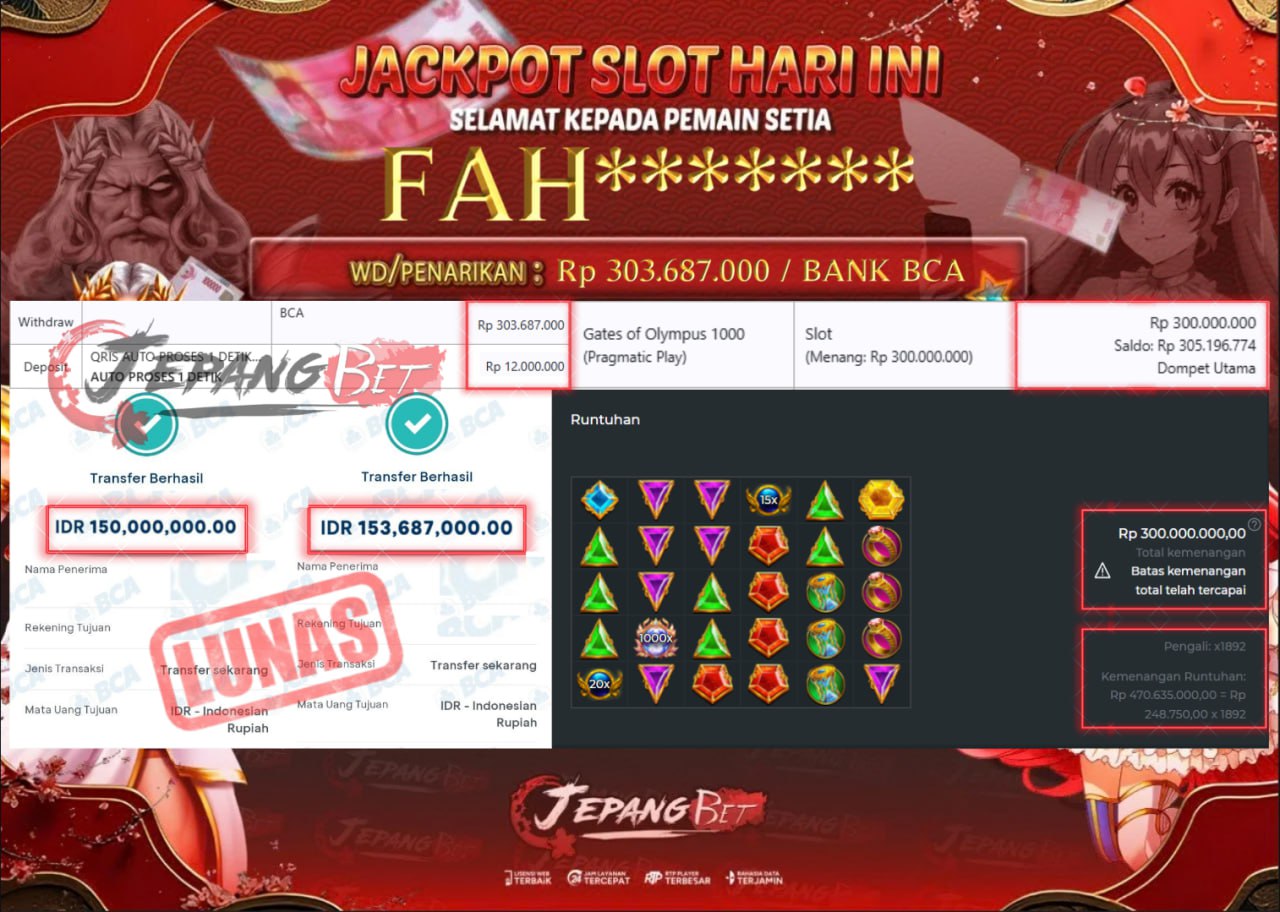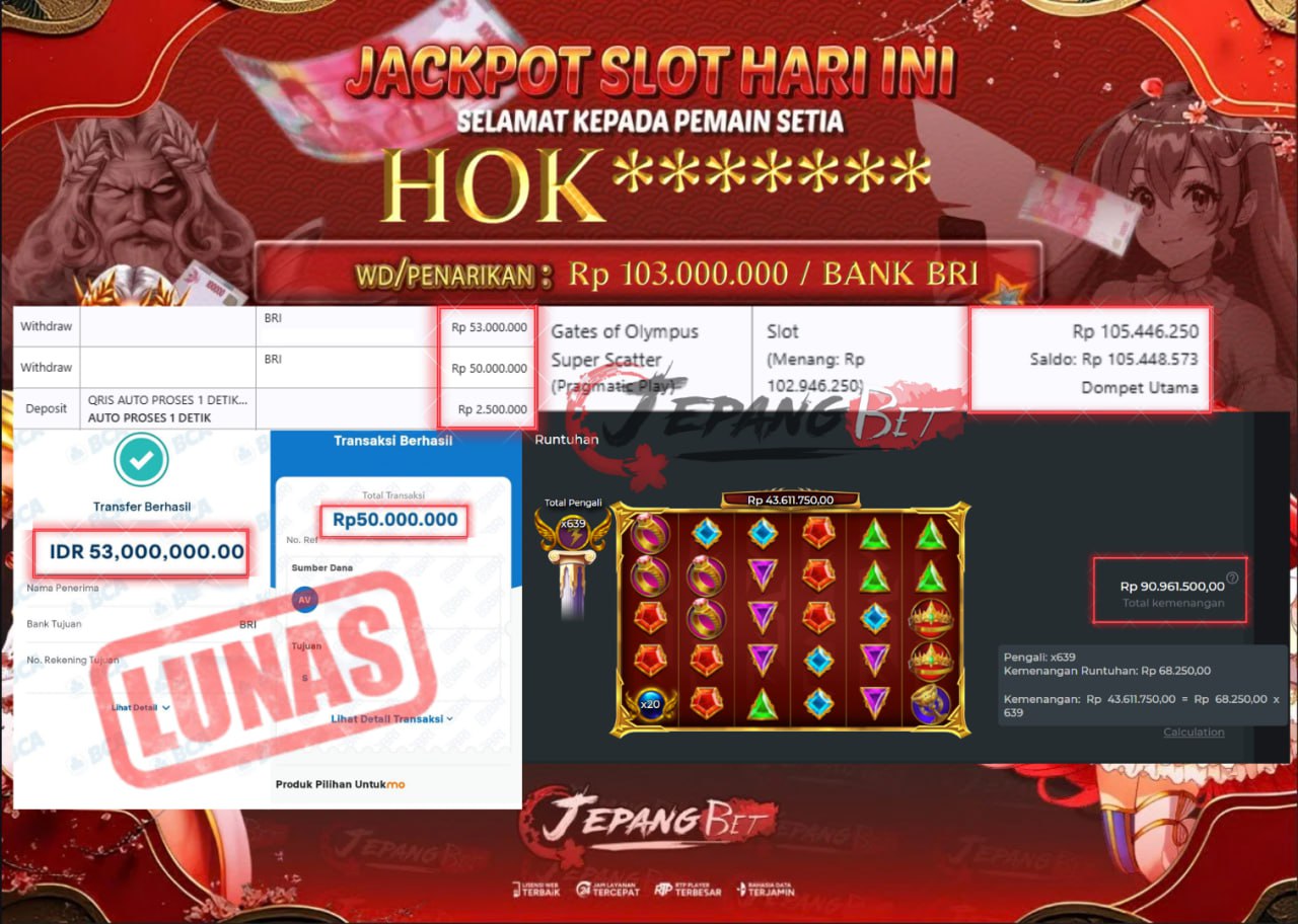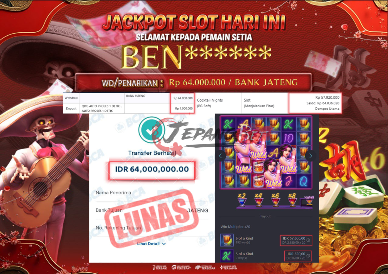 Bukti Lunas Jackpot Jepangbet adalah halaman resmi yang menampilkan dokumentasi pembayaran kemenangan para member. Di sini Anda dapat melihat bukti transfer dan tangkapan layar kemenangan dari berbagai game yang dimainkan.