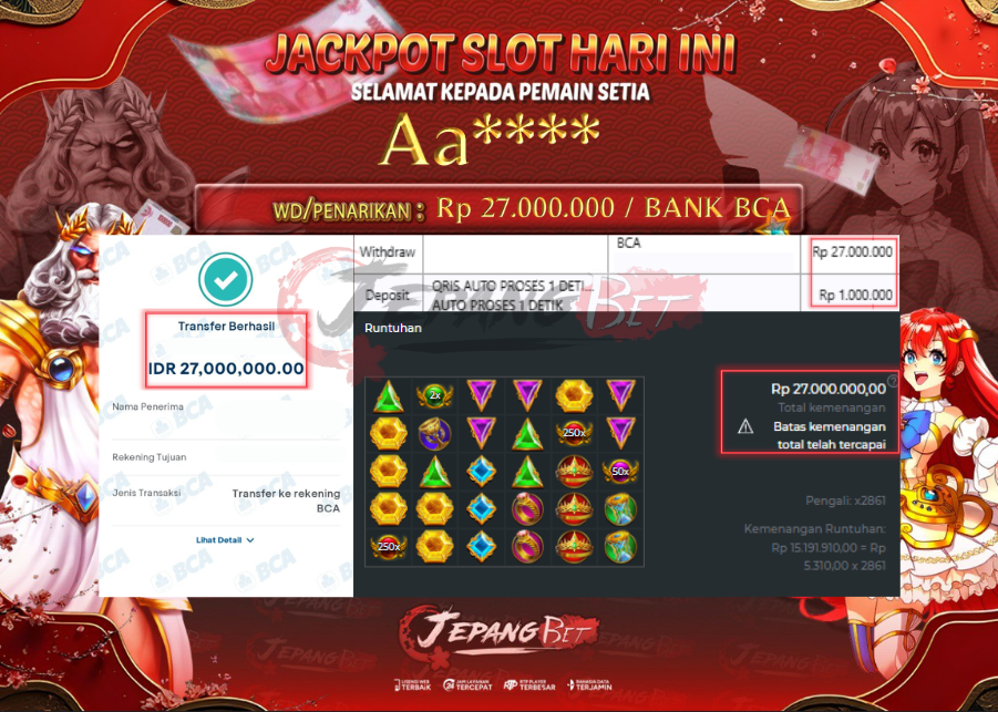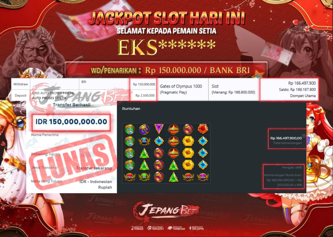 Jepangbet kembali membuktikan komitmennya sebagai bandar slot gacor terpercaya dengan menghadirkan transparansi penuh melalui halaman Bukti Lunas Jackpot. Halaman ini menjadi pusat informasi resmi yang menampilkan dokumentasi pembayaran jackpot kepada para member yang berhasil meraih kemenangan besar, tanpa potongan, tanpa drama.