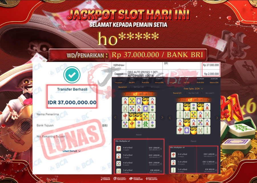 Jackpot Slot Mahjong Ways Berhasil Dibayarkan Lunas Sebesar Rp 37.000.000.,- LUNAS