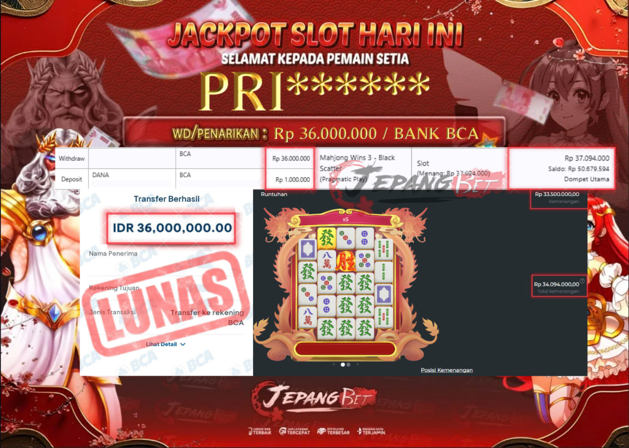 Jackpot Slot Mahjong Wins 3 – Black Scatter Berhasil Dibayarkan Lunas Sebesar Rp 36.000.000., – LUNAS
