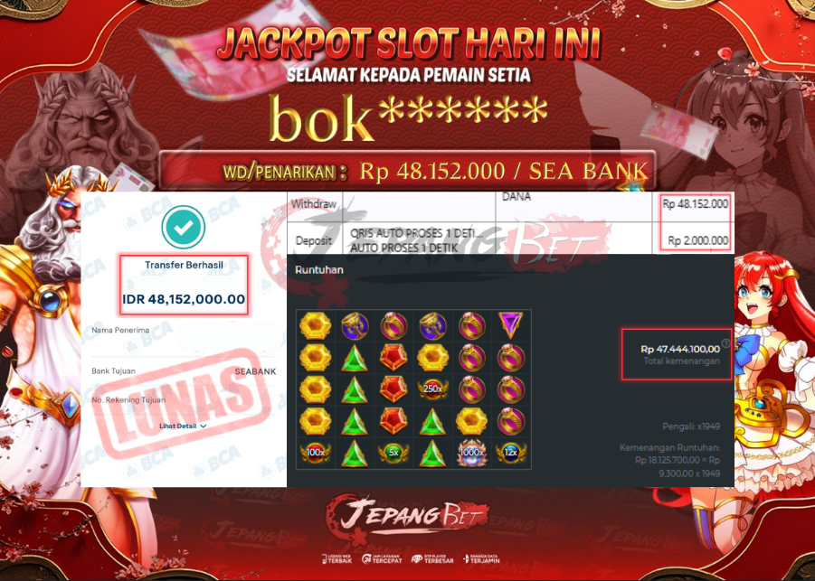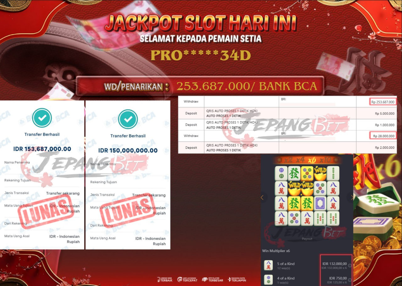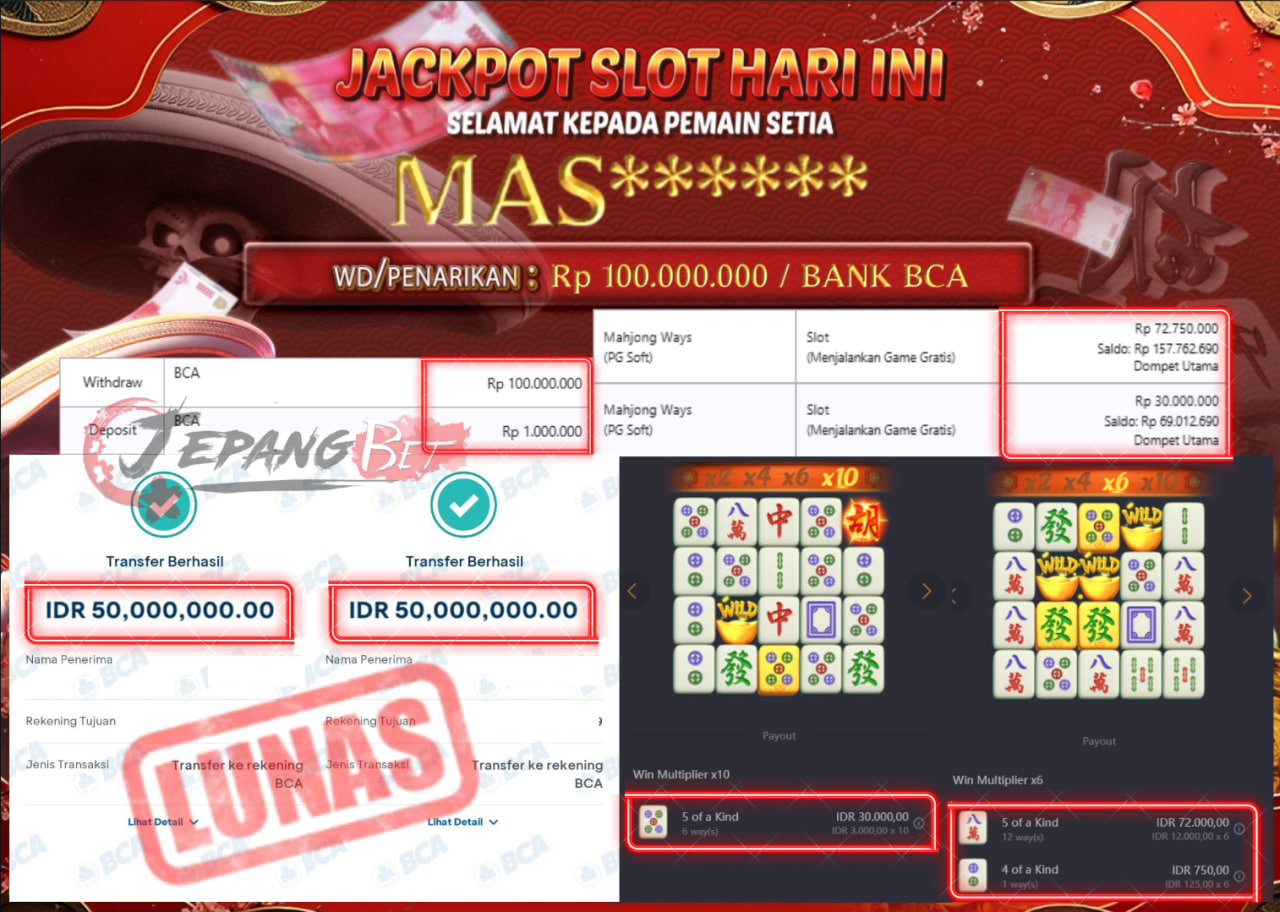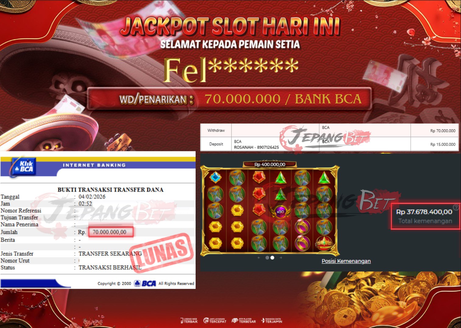 Jepangbet kembali membuktikan komitmennya sebagai bandar slot gacor terpercaya dengan menghadirkan transparansi penuh melalui halaman Bukti Lunas Jackpot. Halaman ini menjadi pusat informasi resmi yang menampilkan dokumentasi pembayaran jackpot kepada para member yang berhasil meraih kemenangan besar, tanpa potongan, tanpa drama.