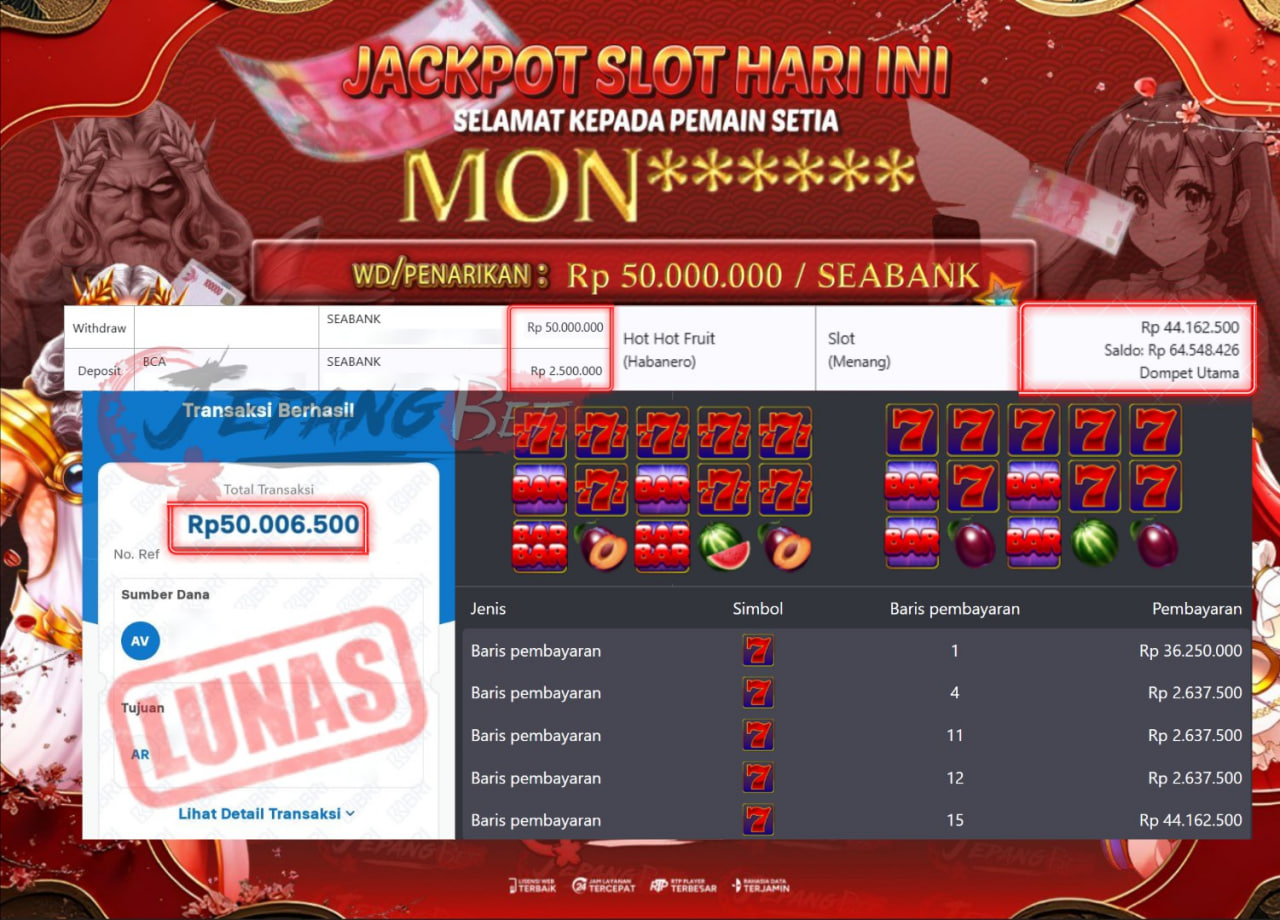 Jackpot Slot Hot Hot Fruit ( HABANERO ) Berhasil Dibayarkan Lunas Sebesar Rp 50.000.000., – LUNAS