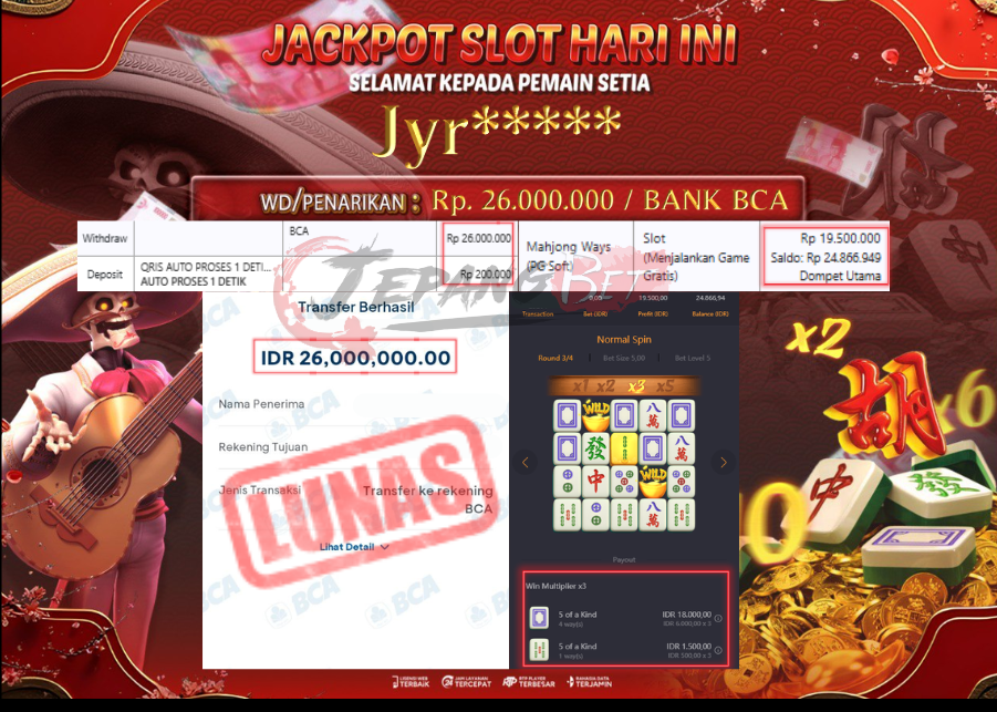 Jackpot Slot Mahjong Ways Berhasil Dibayarkan Lunas Sebesar Rp26.000.000.,- LUNAS