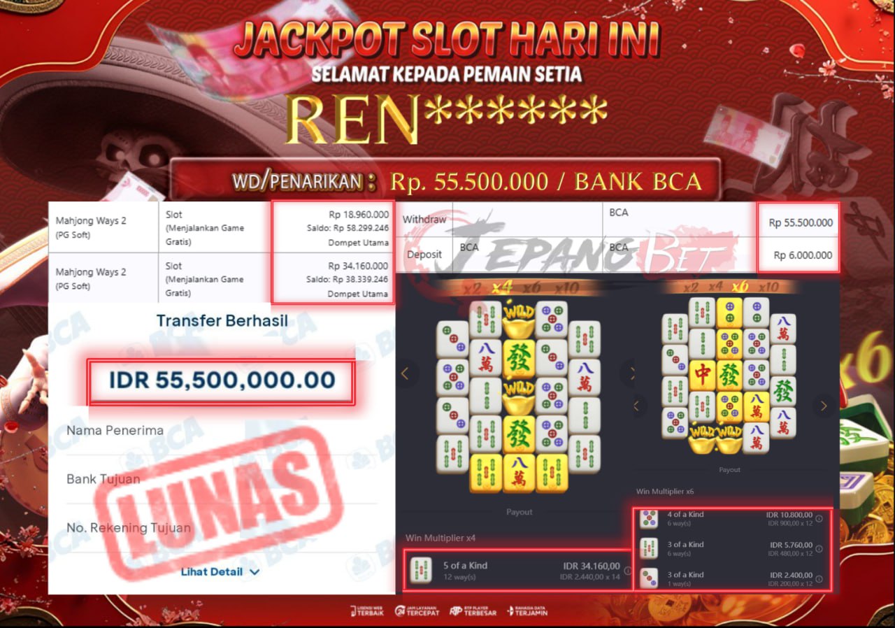 Jackpot Slot Mahjong Ways Berhasil Dibayarkan Lunas Sebesar Rp55.500.000.,- LUNAS