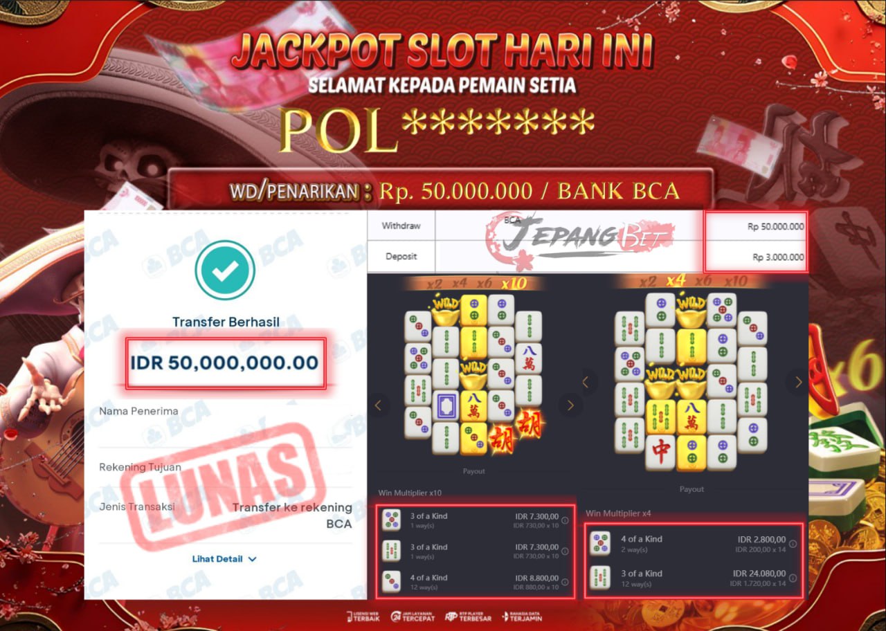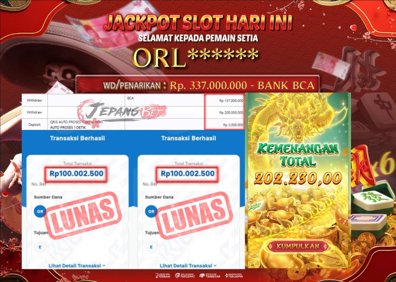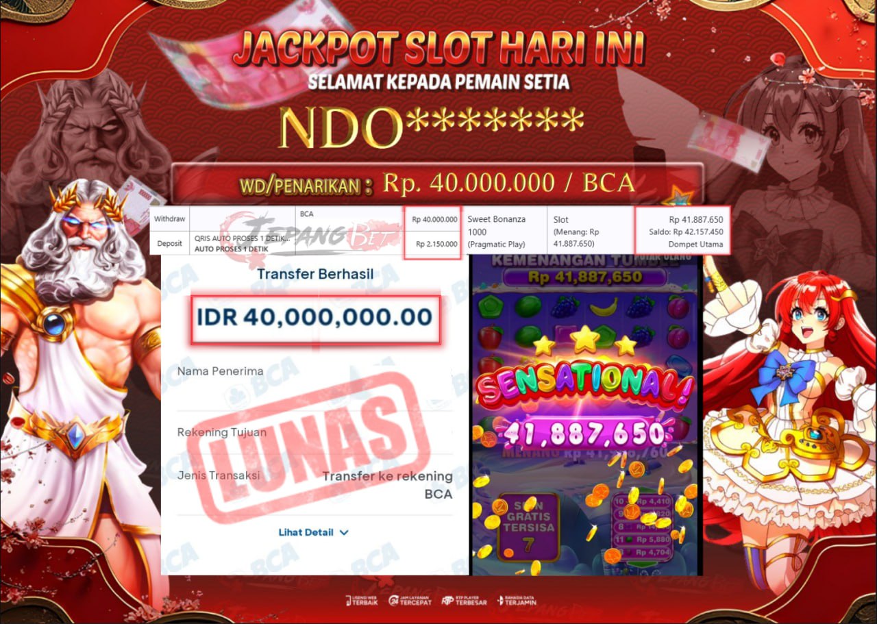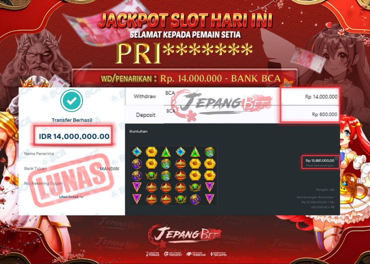 Bukti Lunas Jackpot Jepangbet adalah halaman resmi yang menampilkan dokumentasi pembayaran kemenangan para member. Di sini Anda dapat melihat bukti transfer dan tangkapan layar kemenangan dari berbagai game yang dimainkan.