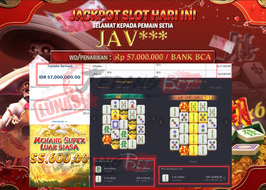 Jackpot Slot Mahjong Ways 2 Berhasil Dibayarkan Lunas Sebesar Rp 57.000.000.,- LUNAS