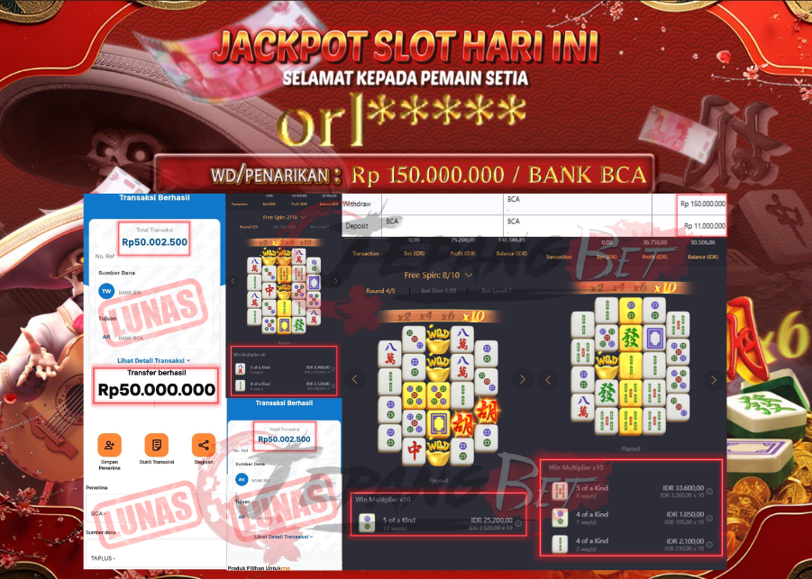 Jackpot Slot Mahjong Ways 2 Berhasil Dibayarkan Lunas Sebesar Rp 150.000.000.,- LUNAS