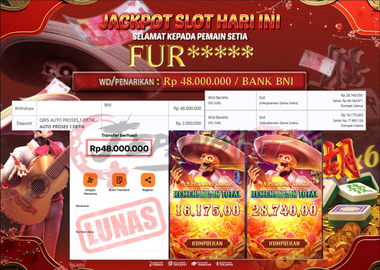 Jackpot Slot Wild Bandito Berhasil Dibayarkan Lunas Sebesar Rp 48.000.000.,- LUNAS