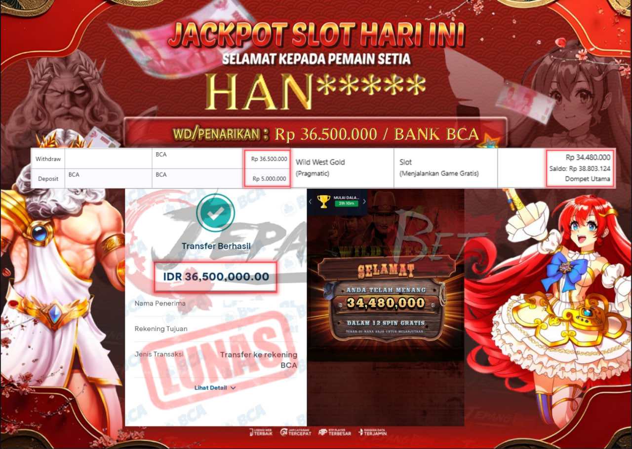 Jackpot Slot Wild West Gold Berhasil Dibayarkan Lunas Sebesar Rp 36.500.000., – LUNAS