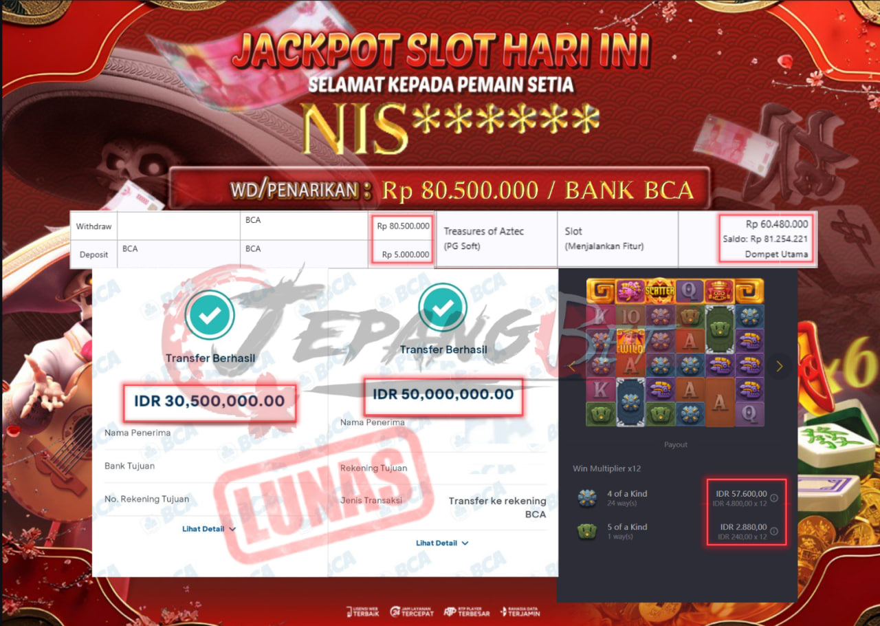 Jackpot Slot Treasures of Aztec Berhasil Dibayarkan Lunas Sebesar Rp 80.500.000.,- LUNAS