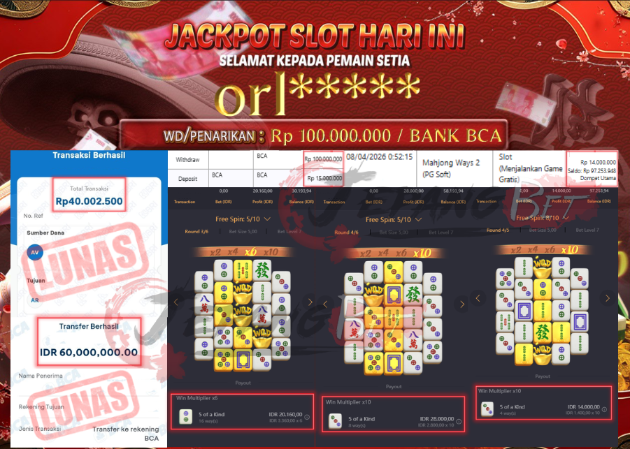 Jackpot Slot Mahjong Wins 2 Berhasil Dibayarkan Lunas Sebesar Rp 90.000.000., – LUNAS