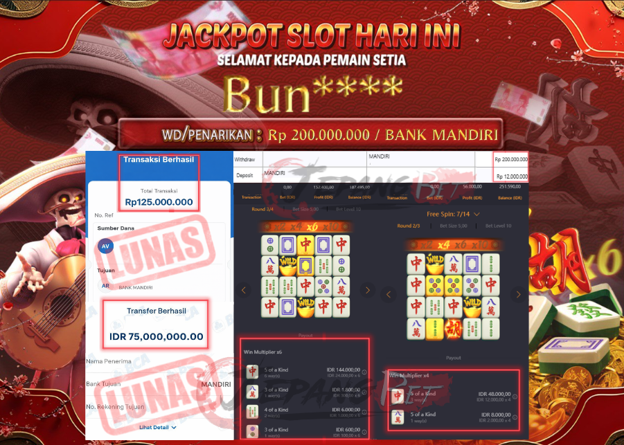 Jackpot Slot Mahjong Ways Berhasil Dibayarkan Lunas Sebesar Rp 200.000.000.,- LUNAS
