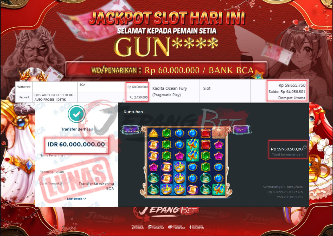 Jackpot Slot Kadita Ocean Fury Berhasil Dibayarkan Lunas Sebesar Rp 60.000.000., – LUNAS