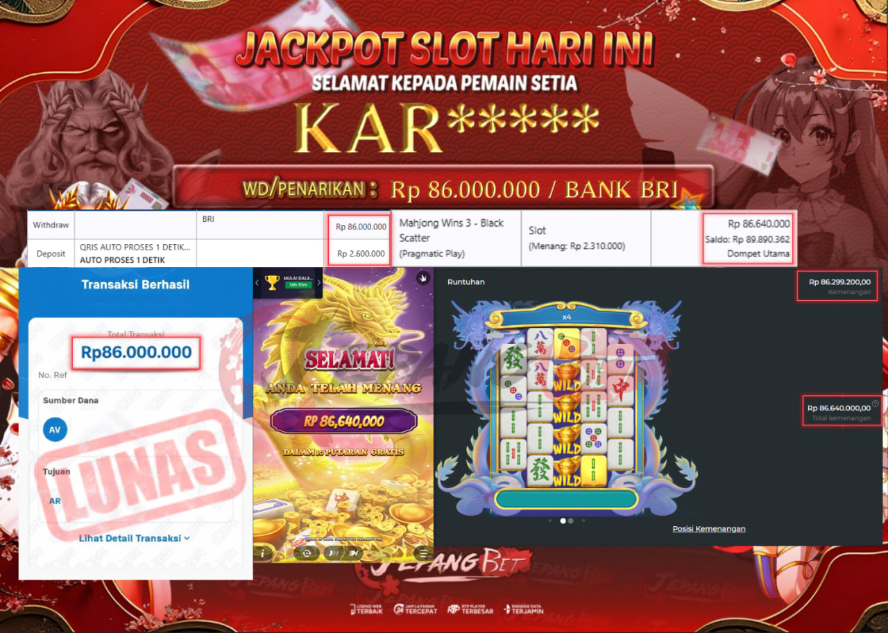 Jackpot Slot Mahjong Wins 3 – Black Scatter Berhasil Dibayarkan Lunas Sebesar Rp 86.000.000., – LUNAS