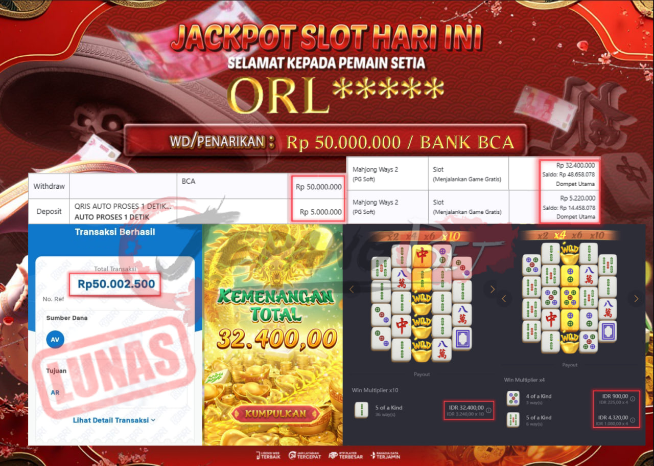Jackpot Slot Mahjong Ways 2 Berhasil Dibayarkan Lunas Sebesar Rp 50.000.000.,- LUNAS