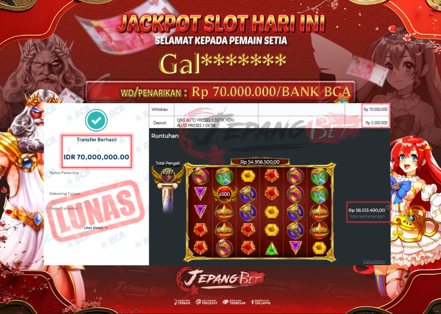 Jepangbet kembali membuktikan komitmennya sebagai bandar slot gacor terpercaya dengan menghadirkan transparansi penuh melalui halaman Bukti Lunas Jackpot. Halaman ini menjadi pusat informasi resmi yang menampilkan dokumentasi pembayaran jackpot kepada para member yang berhasil meraih kemenangan besar, tanpa potongan, tanpa drama.