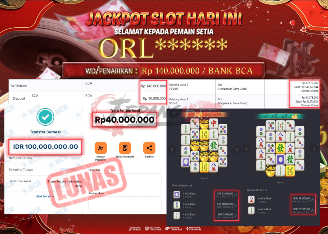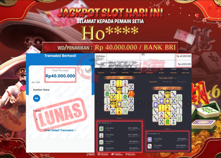 Jackpot Slot Mahjong Ways Berhasil Dibayarkan Lunas Sebesar Rp 40.000.000.,- LUNAS