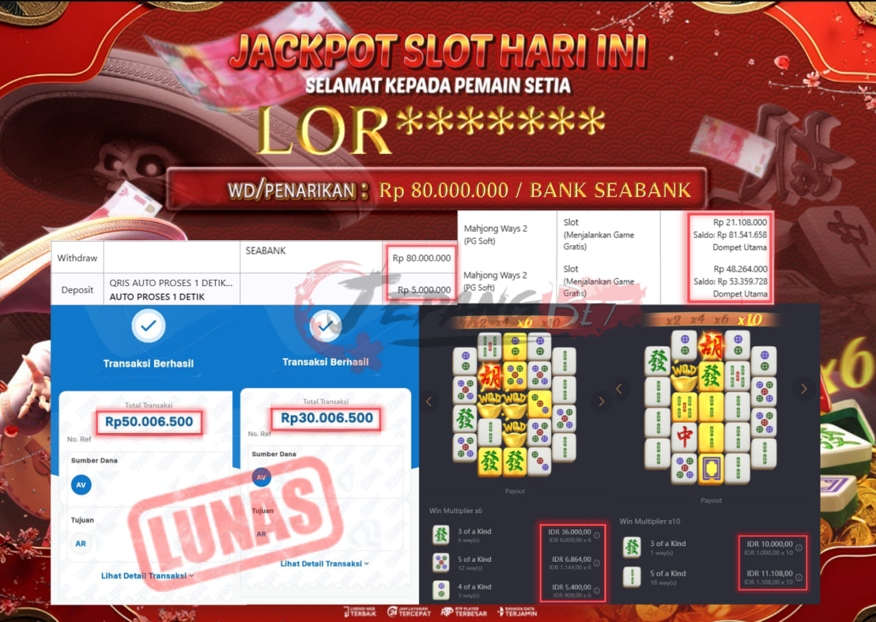 Jackpot Slot Mahjong Ways 2 Berhasil Dibayarkan Lunas Sebesar Rp 80.000.000.,- LUNAS