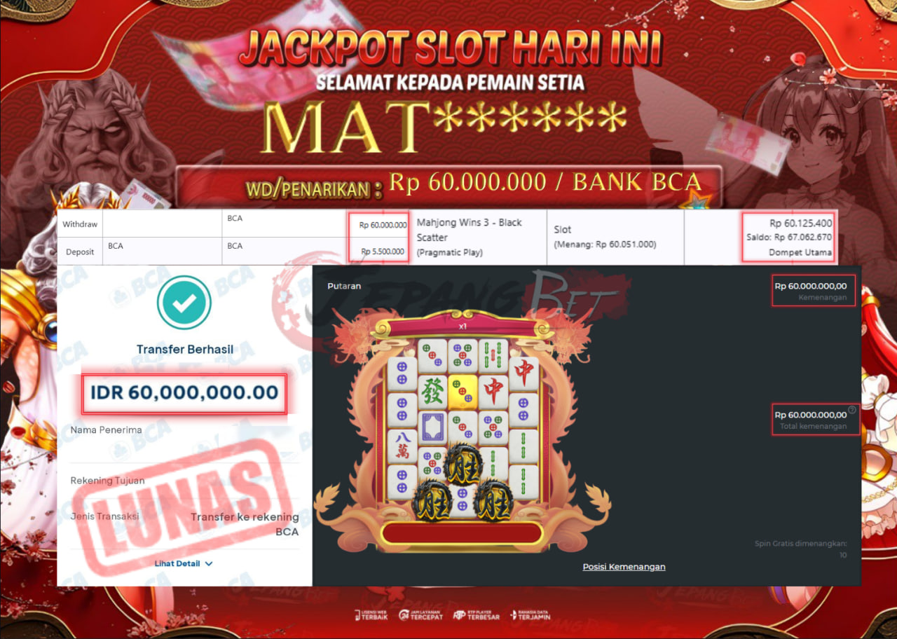 Read more: Jackpot Slot Mahjong Wins 3 – Black Scatter Berhasil Dibayarkan Lunas Sebesar Rp 60.000.000., – LUNASPola Jakpot : Pragmatic Play