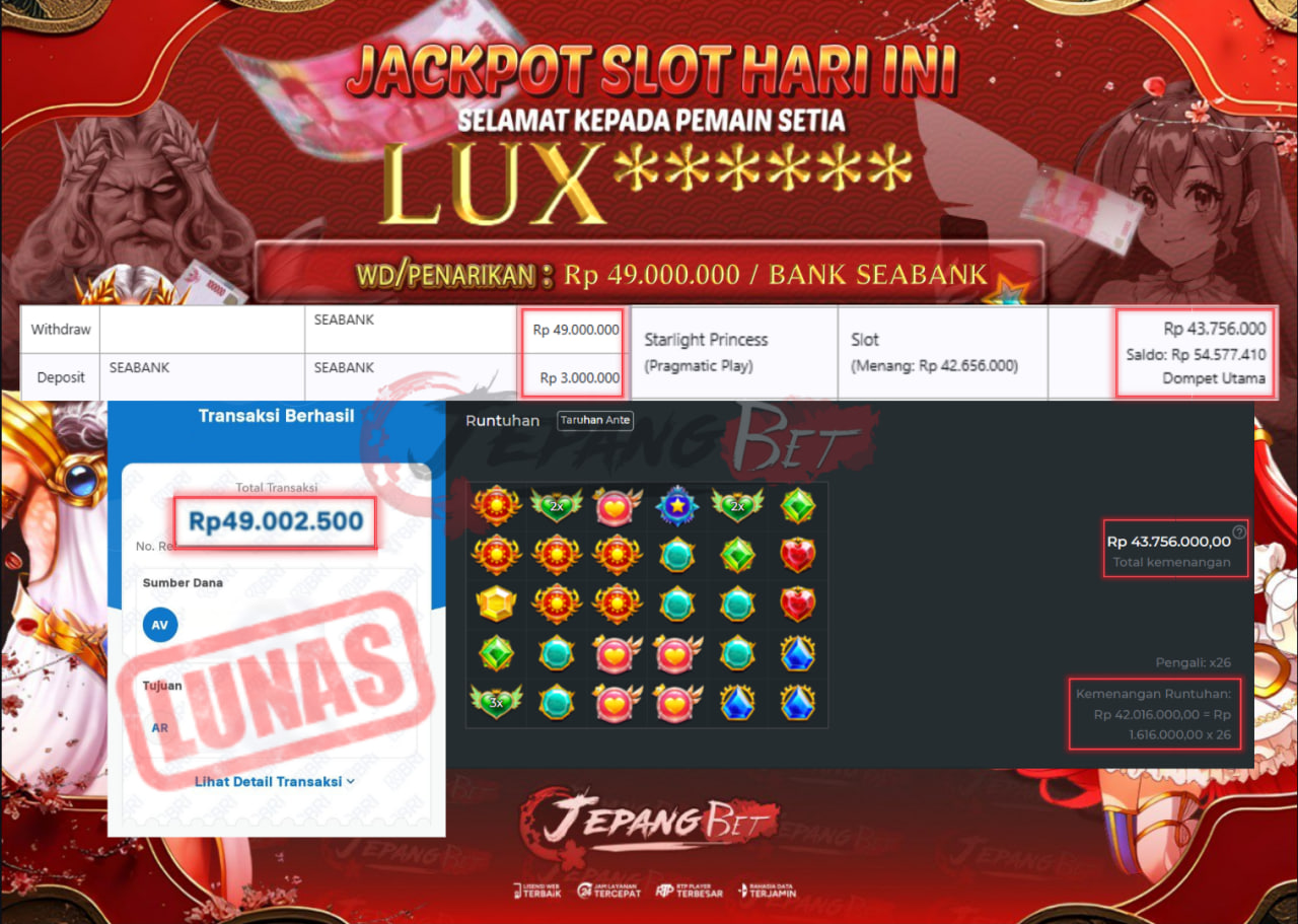 Read more: Jackpot Slot Starlight Princess Super Scatter Berhasil Dibayarkan Lunas Sebesar Rp 49.000.000., – LUNASPola Jakpot : Pragmatic Play